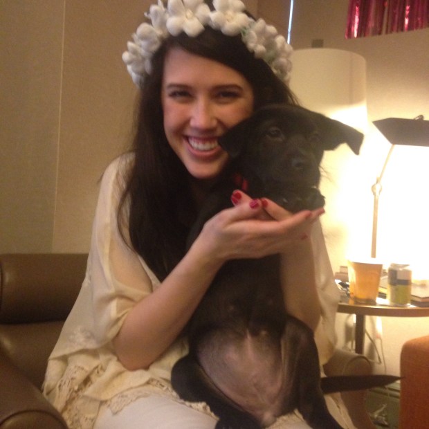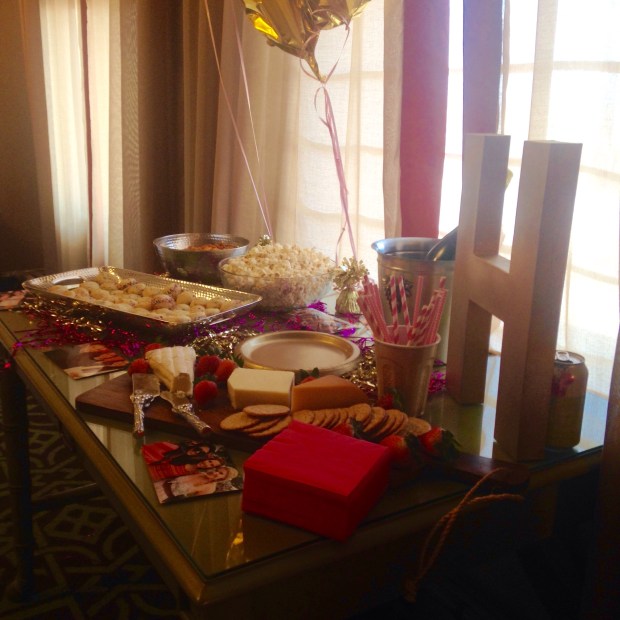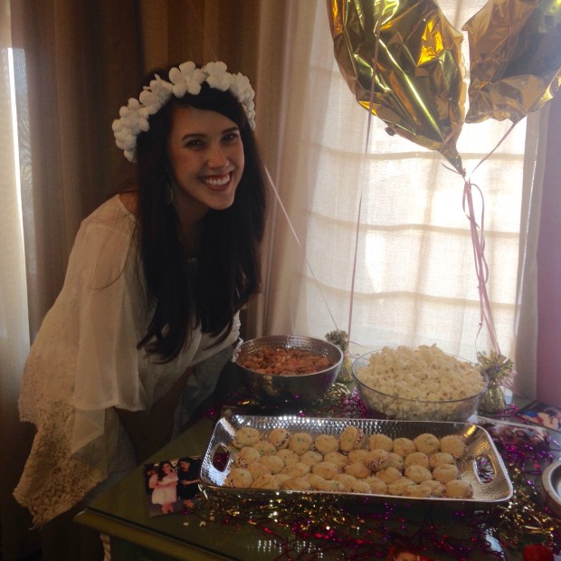 After we settled in, Katie opened lingerie (NO PICS!! Josh, you’ll just have to wait ;)) and we played a couple games. Throughout Katie’s life, she’s been fairly accident prone so we played a true/false game of Katie’s injuries. So fun. And we quizzed her on some questions we had asked Josh beforehand. My favorite question was “If you could get rid of anything of Katie’s, what would it be?” and Josh answered “Barrett”. Which is Katie’s dog. I was laughing out loud when he sent that. AND Erin’s bf brought up their new pup, Laura Bush (true Texans, y’all) and she was beyond precious. Cue 12 girls awing.