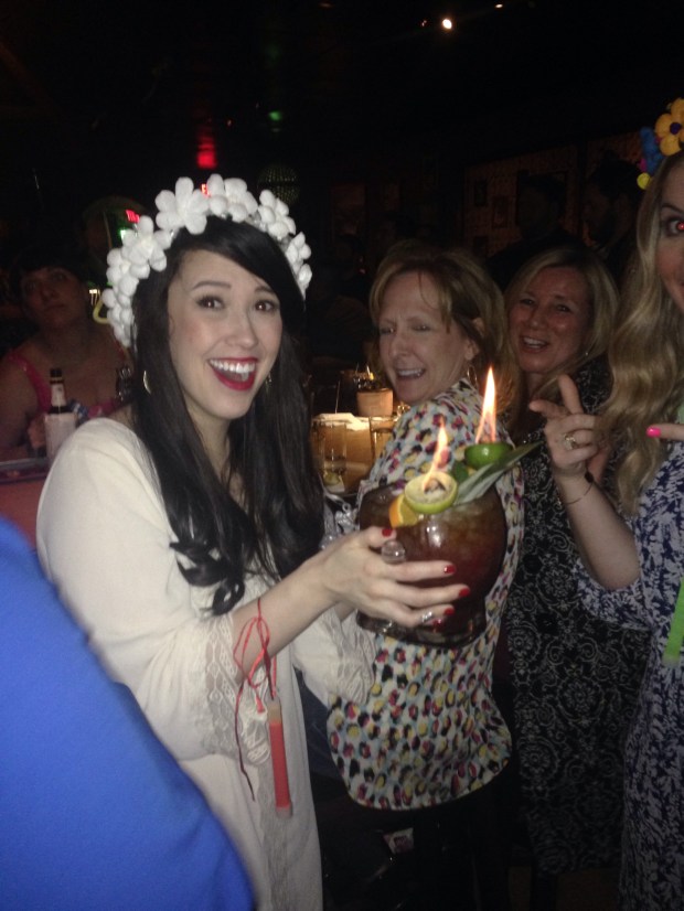 Preface: NONE of us go out like this anymore (as in, bar hopping with tons of drinks and staying up until 3 in the morning). BUT it was party bus time! SO many memories from college on a party bus. It was very appropriate that this was the way we celebrated Katie (our president), with so many AXO’s in town. Lei Low, in the heights, was the first stop. Dan and I loved it when we went so I was excited for everyone to check it out. The only indication on the front is a neon “Rum” sign. The only tiki bar I know of in Houston. Drinks are very detailed and pretty darn good, although sometimes bitter.